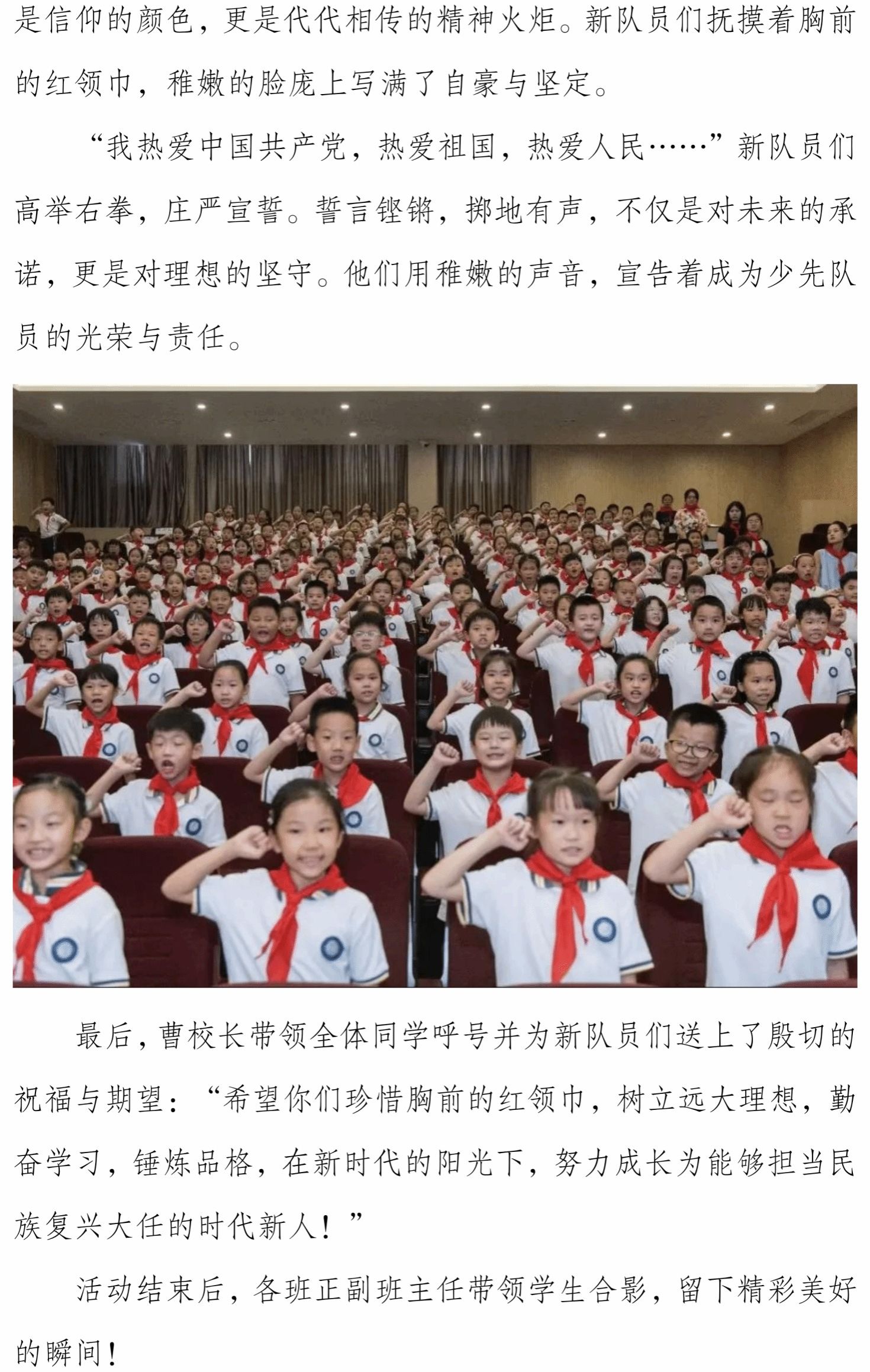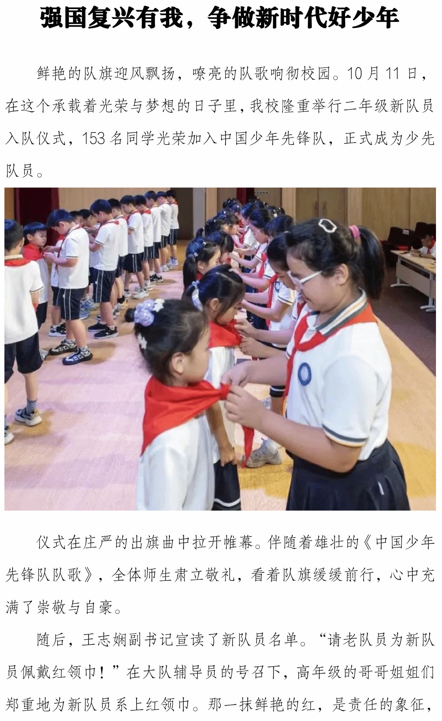 强国复兴有我,争做新时代好少年——二年级新队员入队仪式
