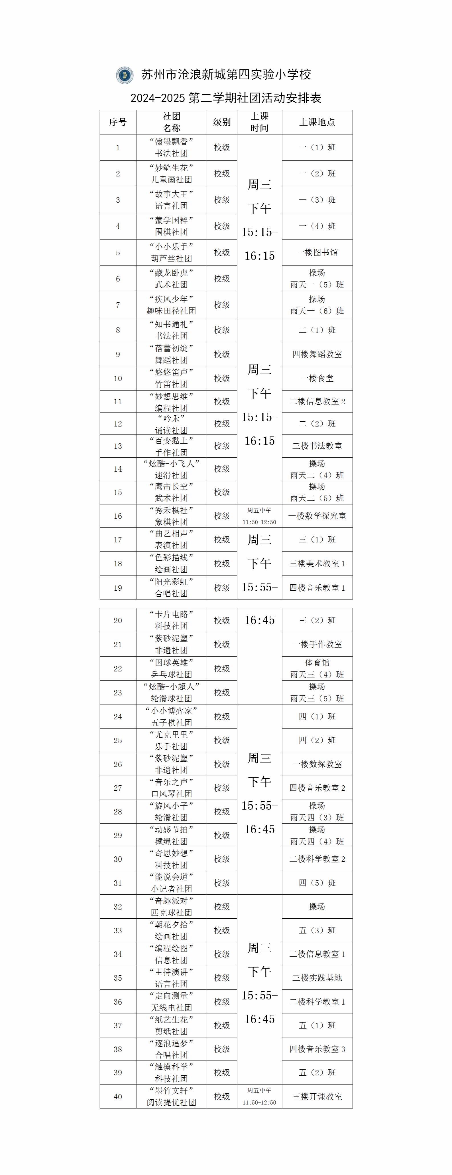 校级社团活动安排表及任课教师(2024-2025第二学期)